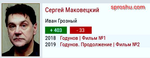 В исторической саге "Годунов" от режиссёров Алексея Андрианова и Тимура Алпатова, который в ноябре 2018 года показал телевизионный канал "Россия 1" задействовано немалое количество известных и малоизвестных актёров и актрис. Одним из этих известных актёров является Сергей Маковецкий. Так вот, Сергей Маковецкий сыграл в этом замечательном многосерийном (17 серий) кинофильме роль царя всея Руси Ивана IV Грозного.