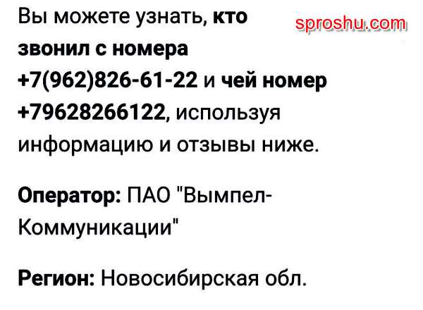 Кто звонит с номера +79628266122? Чей номер 7-962-826-61-22?