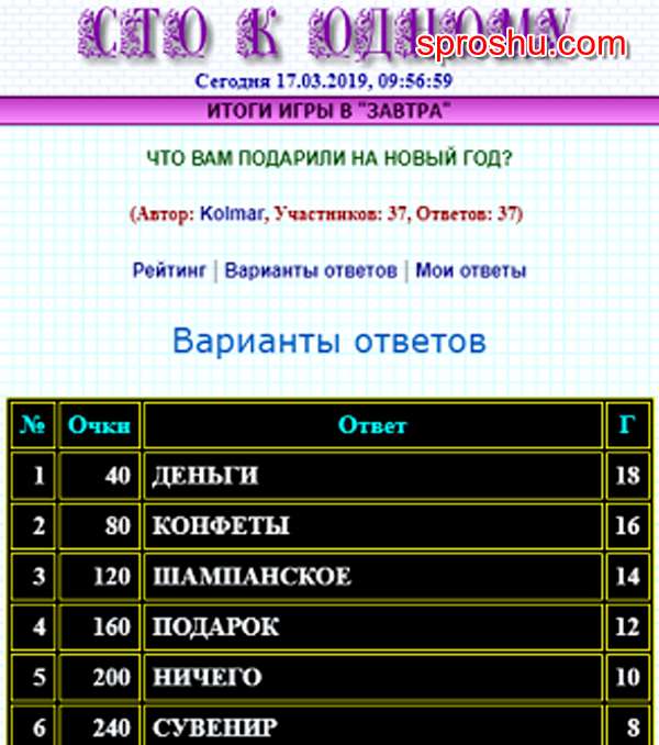 100 к 1. Что вам подарили на Новый год? (интерактивная игра)?