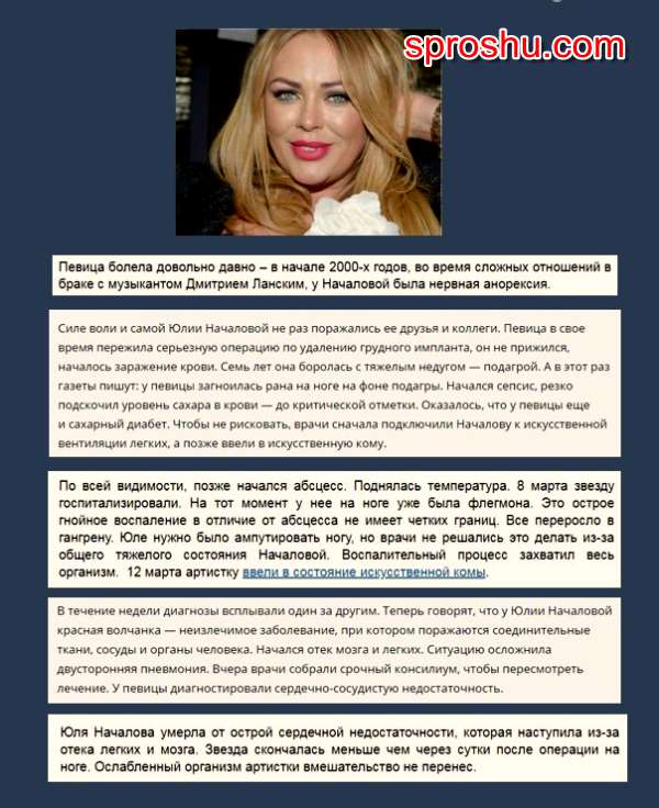 Чем болела Юлия Началова?