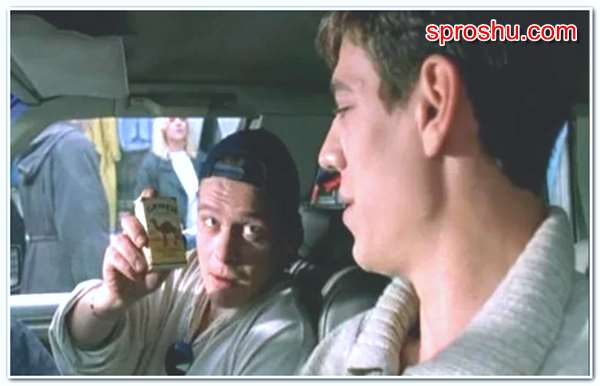 А в конце диалога Космос (Дюжев) прямым текстом утверждает, что курит Мальборо (Marlboro).