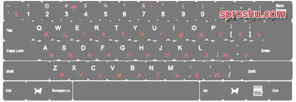 Нашёл я такую картиночку в Сети. А то-всё маялся, когда надо было ввести латинские буквы. Не всегда светло, не всегда удобное "положение и расположение" тела и клавиатуры. Надеюсь обойтись теперь без этих мучений и не надо будет вглядываться в клавиатуру. Здесь "клава" как моя. Чёрного цвета. Нет на ней цифрового блока справа. Но он и не нужен. Вся раскладка на виду. Правда я использую "русскую машинопись". Буква "Е" не непонятно где, а справа от буквы "Ю". И теперь, если вам надо например набрать имейл, ввести каптчу на иностранном, или написать что-то другой латинскими буквами(при условии что вы печатаете всплепую по русски 10-ти пальцевым методом) Вам не надо смотреть на свою клавиатуру реальную. А нужно лишь вызвать эту картинку. Предварительно запомнив где она у вас находится. Например в "Изображениях". И, думаю, через какое-то время, буквы будут запоминаться "на ощупь". Вот я например могу имейл на ощупь найти и написать.