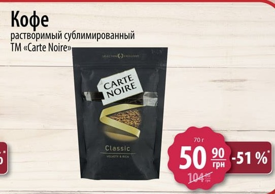 - растворимый кофе Carte Noire, пожалуй, самое аппетитное предложение продуктовой категории, цена снижена почти вдвое;