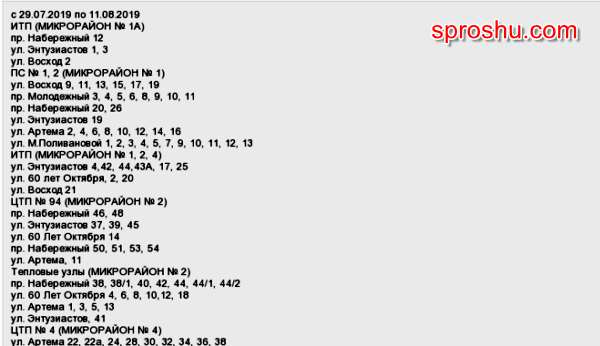 График отключения горячей воды в Сургуте в 2019 году, какой?