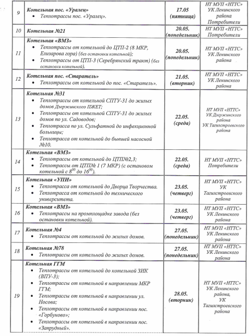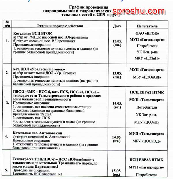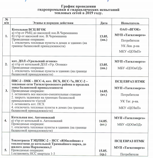 График отключения горячей воды в Нижнем Тагиле в 2019 году, какой?