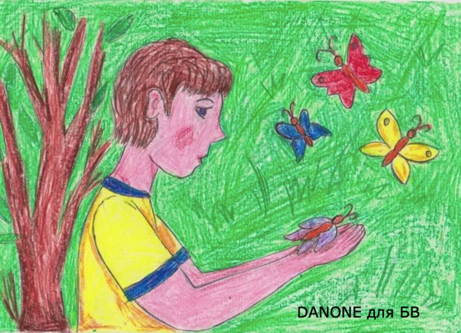 Очень красиво будет, если изобразить бегущего мальчика и спереди него бабочку.