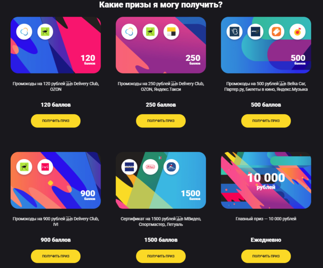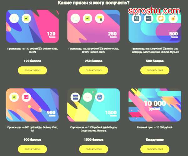А вот следующие 6 призов, которые можно выиграть при участии в акции, и сколько баллов они стоят: