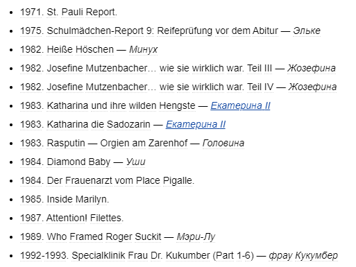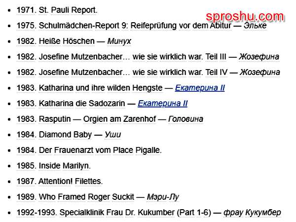 Вот избранная фильмография немецкой артистки Уши Карнат: