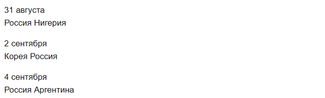 Вот так выглядит расписание матчей сборной России на групповом этапе:
