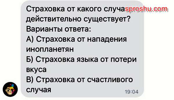 и именно он является правильным ответом, а завершает пояснение, страховка от счастливого случая - это конечно шутка.