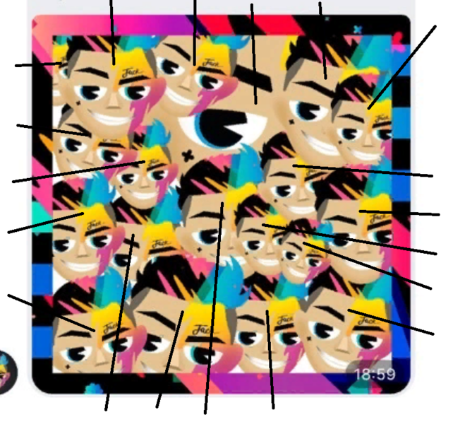 Лично я легко и быстро нашла девятнадцать Джеков (если считать только лица, просто я подумала, а вдруг еще надписи Jack считать надо, но это вряд ли) на этой картинке. Потом еще пересчитала несколько раз, больше не нашла. Вот я их всех выделила на картинке: