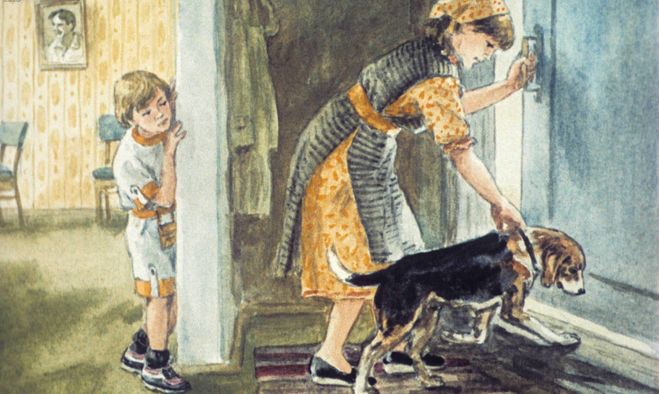 Мама выгоняет собаку на улицу, а мальчику становится стыдно и он признается маме с своей провинности.