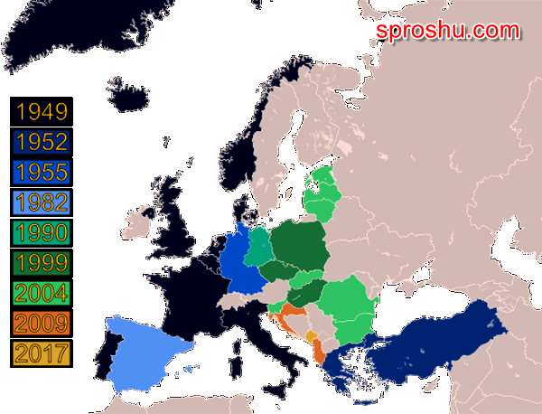 1999- Венгрия, Польша и Чехия; 2004 -Болгария, Латвия, Литва, Румыния, Словакия, Словения и Эстония;, 2009 г. - Албания и Хорватия, приблизилось к границам России.