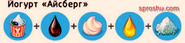В игре Моя кофейня приготовить йогурт "Айсберг" можно по следующему рецепту.