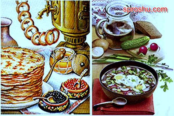 Как, что нарисовать про Русское застолье? Какие показать угощения?