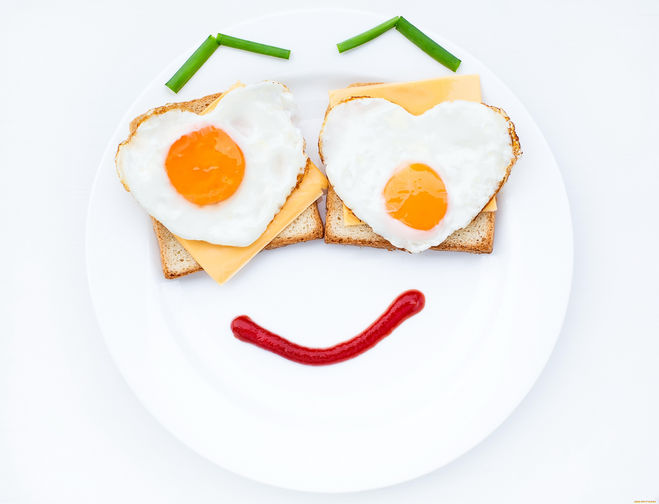 Чтобы завтрак вызывал приятные эмоции, проявите фантазию при подаче обычных блюд. Например, приготовьте яичницу-глазунью из двух яиц и кетчупом нарисуйте улыбку. Получится веселый смайлик, который поднимет вам настроение. Веселые рожицы на тарелке можно приготовить и из других продуктов. Такой завтрак обеспечит вам хорошее настроение и позитив на весь день.