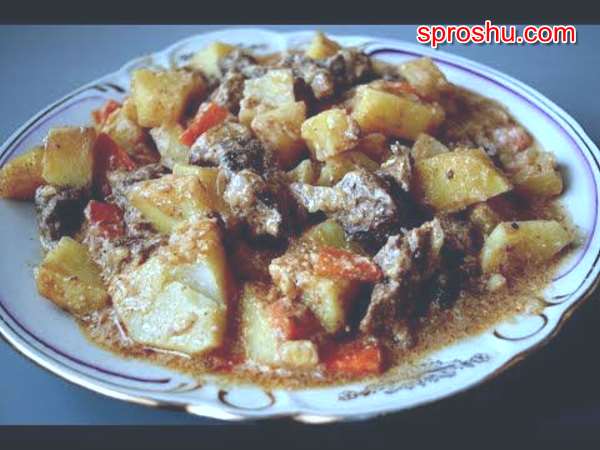 Как ни странно, но такое блюдо я нашла и оно очень напоминает тушённую картошку с мясом, но для приготовления необходимо подготовить следующие продукты: