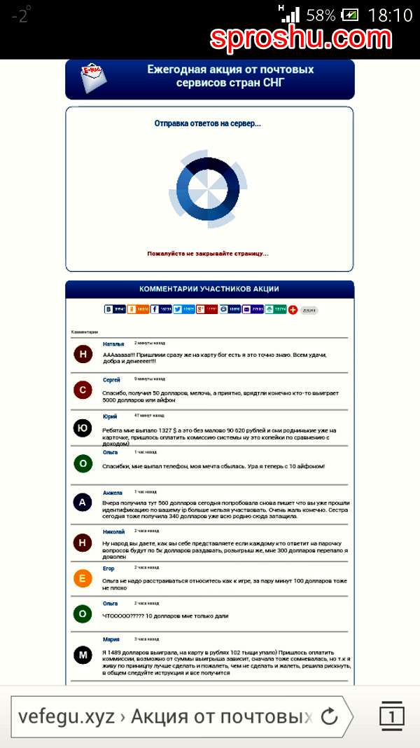Якобы я тут выиграла определённую сумму денег. Но чтобы её получить, нужно заплатить комиссию. Это очередной развод, этому сайту не стоит верить. Ничего он вам не заплатит.