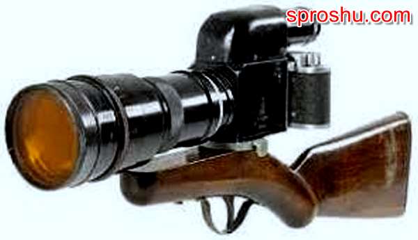 У вас на фотографии первая или вторая модель "Фотоснайпера", с камерой "ФЭД". Такой антиквариат действительно может стоить не меньше ружья огнестрельного. Но версии посвежее - с камерой "Зенит" специальной модификации (с буквой "С" в конце маркировки модели, означающей, что камера для фоторужья и имеет дополнительный спусковой механизм в нижней части), объективом Таир-3С (тоже специальный для "снайпера", с особенным приводом фокусировки и закрытия диафрагмы) и металлическим прикладом значительно дешевле.