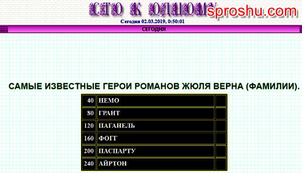 100 к 1. Самые известные герои романов Жюля Верна? (интерактивная игра)?