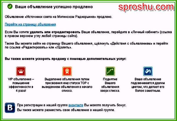 Обновление даты объявления на самом деле занимает доли секунды. Но ведь тогда поисковая система не зачтёт просмотр страницы как полноценный. Вот, нас с вами и держат тут за лохов, которым показывают, буд-то бы идёт какой-то процесс обновления. Ничего там не идёт, кроме затягивания времени. А, вот, и сама реклама, которая на сайте с активными ссылками, но сперва необходимо вновь кликнуть мышкой. Можно этого и не делать, потому что в электронную почту уже свалилось подтверждение продления. Я обычно в этом месте уже закрываю окно, но вы для чистоты эксперимента можете посмотреть, что будет дальше. Нажмите, например, "мне не интересно". Ничего страшного не случится, а лишь откроются картинки и ссылки на рекламу. Всё, можно закрываться.
