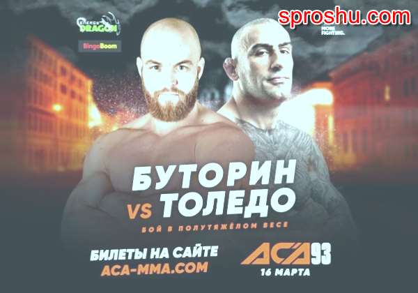 16 марта 2019 года в городе Санкт-Петербурге пройдет турнир "ACA 93" в рамках которого пройдет бой между россиянином Алексеем Буториным и испанцем Даниэлем Толедо.
