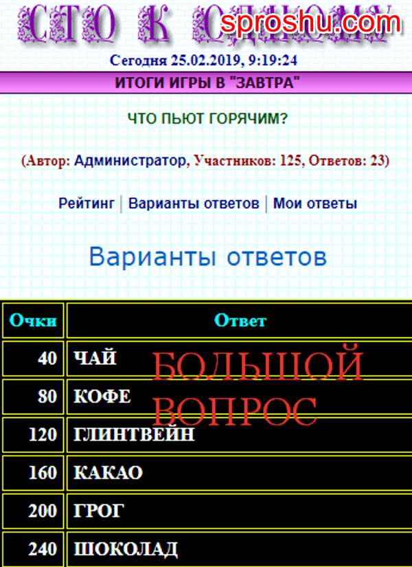 100 к 1. Что пьют горячим (интерактив. игра)?