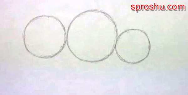 Начнем рисовать с трех кругов, центральный круг у нас будет побольше, а вот круги по бокам немного меньше.