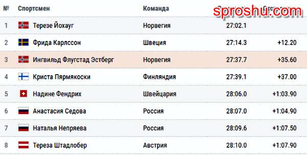 Лыжи ЧМ Зеефельд 26. 02. 19 Женщины 10 км Какие результаты гонки?