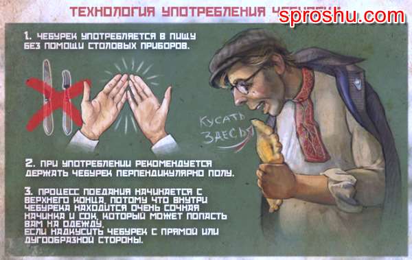 По интернету вот такие картинки гуляют насчет техники употребления чебурека.