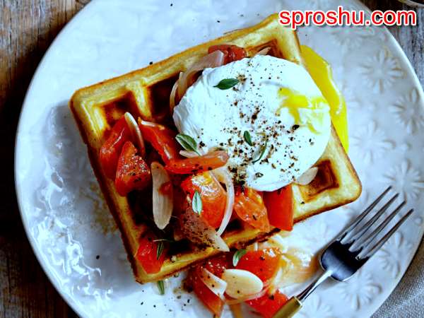 Если захотелось вафельного завтрака можно испробовать на себе новое модное веяния в еде. А именно сейчас вошло в моду вафли которые часто называют Венские есть на завтрак с яйцом и беконом. Можно дополнять еще и салатом. По сути в этом завтрака вафля роль хлеба исполняет и это нечто похожие на бутерброд.