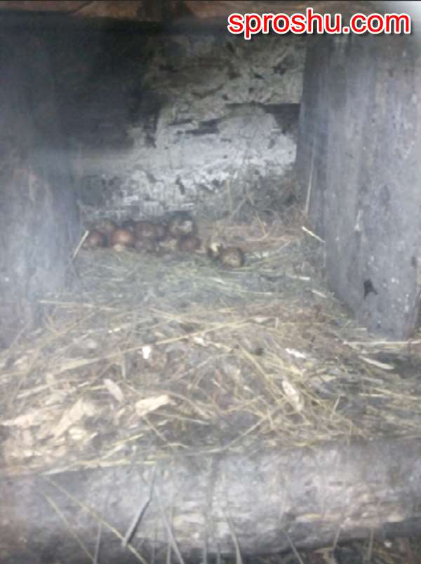 Самый вероятный вариант - крысы. Скорее всего куриное гнездо было промежуточным местом хранения стратегически важного запаса как самое удобное на пути к норе, а дальше что-то пошло не так. Крысу могли спугнуть проснувшиеся люди или кошки и свое сокровище она не успела перенести в норку, или же причина банальная - картошка попросту по размеру не пролезла в нору.