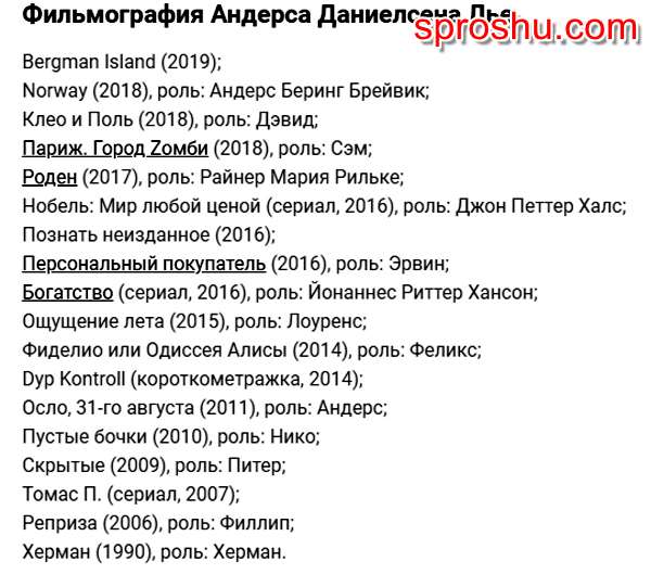 Вот в каких фильмах снялся актёр Андерс Даниелсен Лье: