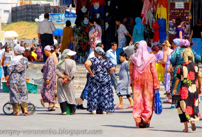 Ташкент столица ,и там и раньше всегда было много народа разной национальности,ведь всех разом не превратишь мусульман.И не заставишь одеваться как мусульмане.Конечно там было много желающих превратить Узбекистан в единый мусульманский халифат и что бы все разговаривали только по узбекски и ходили в национальной одежде.Но тогда в Узбекистане был президентом Каримов,он придерживал через-чур горячие головы,понимал что будет, если разрешить такое.Но там всегда одевались по городскому,только на базаре и за пределами города женщины прикрывались.