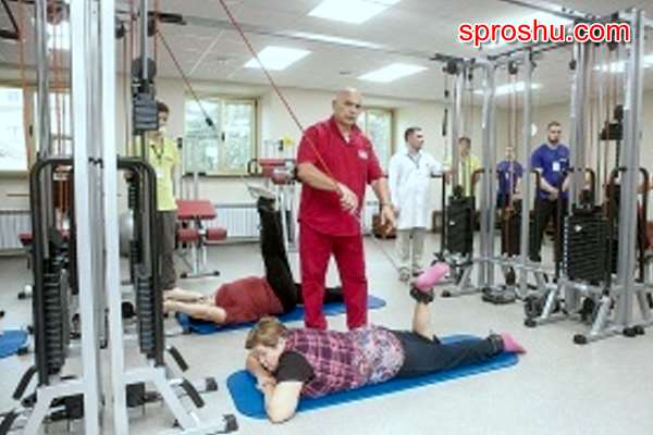 На фото – доктор Бубновский проводит занятие лечебной физкультуры.