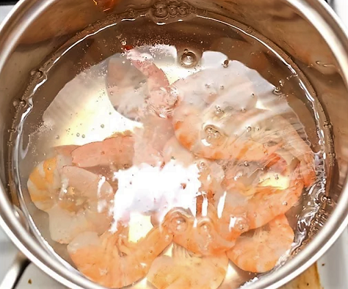 Для варки креветок нужно вскипятить воду, можно чуть её подсолить - около 1/2 ч/л на 1 л воды. В идеале вообще не солить, т.к. них уже есть часть морской соли, а использование варёных креветок в блюдах предполагает последующее соление-перчение, другие специи и пряности.