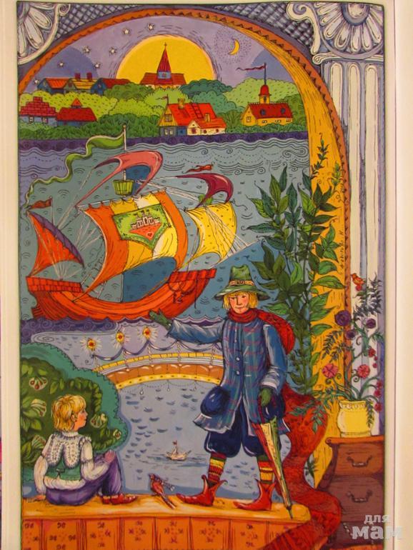 Оле Лукойе приглашает отправиться в плавание на корабле.