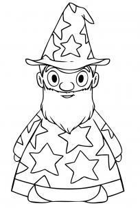 Украсили одежду звёздами. Покажем, выглядывающие из-под мантии, башмаки с острыми "носами".