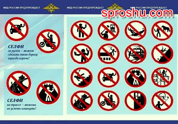 МВД России разработало свод правил из-за того что собственное фотографирование часто приводит к несчастным случаям, памятку-где нельзя фотографироваться можно скачать на сайте МВД, а чтобы обезопасить детей в своем окружении, школьников или соседей можно посмотреть запрещающие знаки ниже, скачать их, распечатать и повесить в школе или стене подъезда.