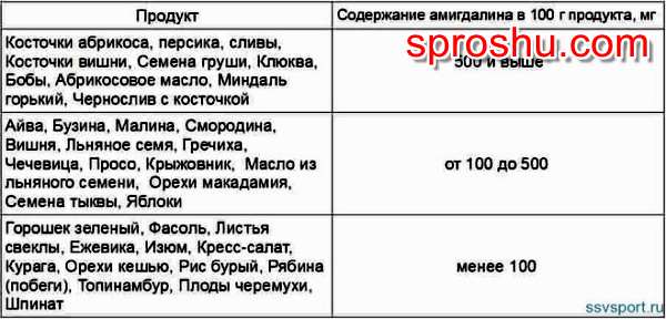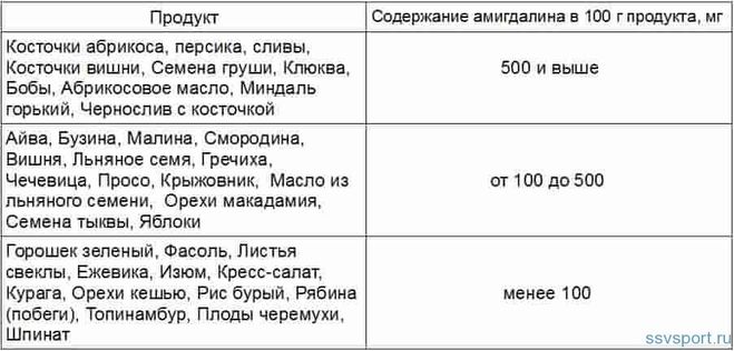 Ниже приведена таблица, в которой видно какие продукты богаты на витамин В17, а в каких он присутствует. Продукты доступные, любой человек может сбалансировать свой рацион если ему не достаточно данного витамина: