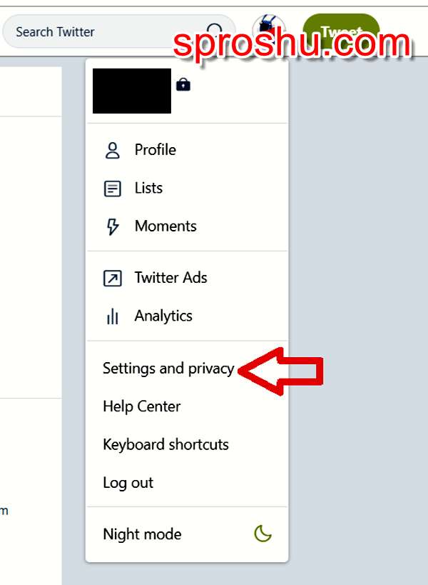 - Выберите опцию settings and privacy ("настройки и конфиденциальность")