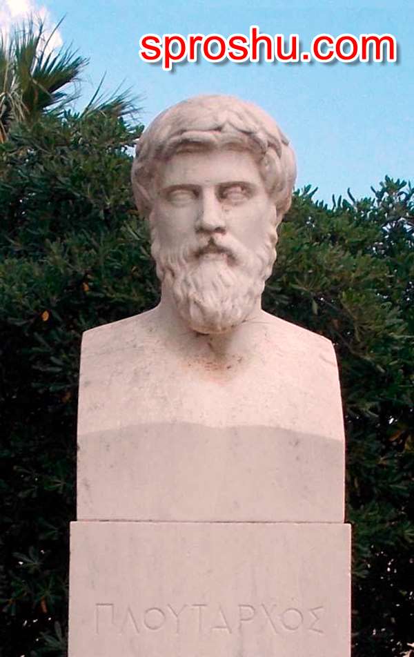 Плутарх (ок. 45 - 127 гг. н. э.) - древнегреческий писатель, историк, моралист. Родился он в Херонее (Беотия), образование получил в Афинах, много путешествовал, затем поселился в Риме. При императоре Домициане вынужден был покинуть Рим (император подвергал философов и ученых гонениям), возвратился в Беотию, активно участвовал в жизни родного города Херонея, являлся жрецом Аполлона Пифийского. Позже пользовался благорасположением императоров Траяна и Адриана.