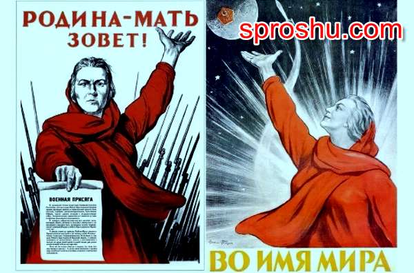 Автор знаменитого плаката 1941г И.Тоидзе изобразил Родину-Мать ещё раз в 1959 г., когда спутник СССР достиг Луны.
