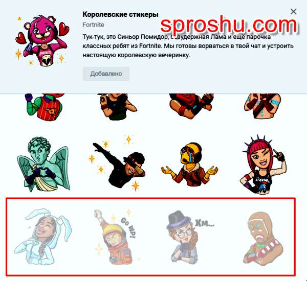 Стикеры Fortnite (Фортнайт) 4 последних как получить не играя в игру ВК?