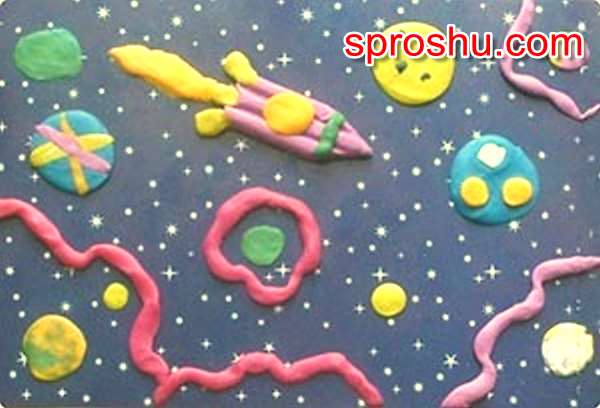 Что показать на открытке из пластилина с детьми ко дню Космонавтики? МК?