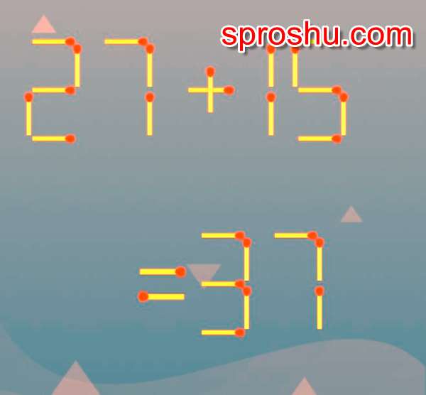 Как решить головоломку со спичками, дабы равенство было верным 27 + 15 = 37?