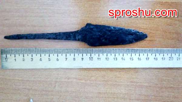 Указанные в цитате параметры (длина 15-20 см, ширина около 3, длина лезвия 8-12) совпадают с тем, что мы видим на фотографии.