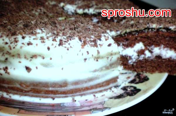 Промазать коржи и дать пропитаться 2-3 часа.Сверху можно украсть ягодами или шоколадной стружкой.