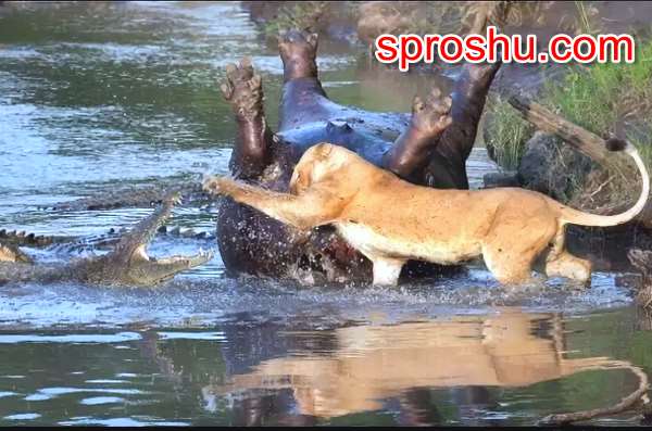 Самая страшная беда приключилась с бегемотом. Он попал в болото, а вытаскивать его - работа не из легких.