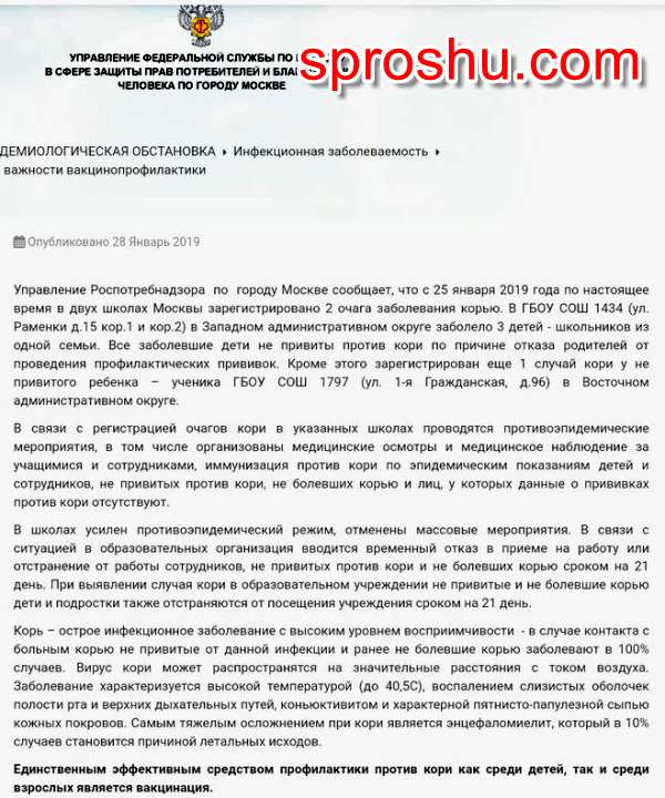 Так, в ГБОУ СОШ 1434 заболели три ребенка корью из 4, 6 и 10 класса. Все они из одной семьи, привиты не были.